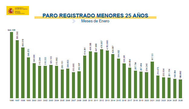 El desempleo de los jóvenes menores de 25 años asciende en el mes de enero en 4.040 personas (2,28%) respecto al mes anterior y marcan su registro más bajo en un mes de enero.
