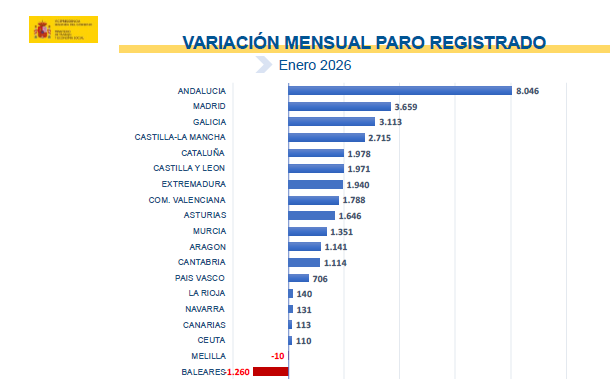 Sube en las 16 comunidades restantes, encabezadas por Andalucía (8.046), Comunidad de Madrid (3.659) y Galicia (3.113).