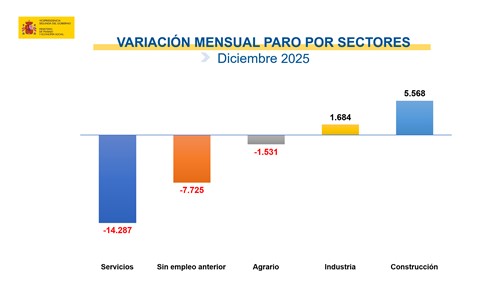 El número de personas desempleadas registradas en las Oficinas del Servicio Público de Empleo Estatal (SEPE), al finalizar el mes de diciembre de 2025, se redujo en 16.291 personas en relación con el mes anterior (-0,67%).
