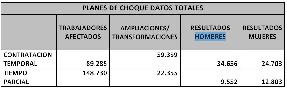 - 59.359 contratos se han transformado como consecuencia de la primera fase del Plan de Choque 2019.