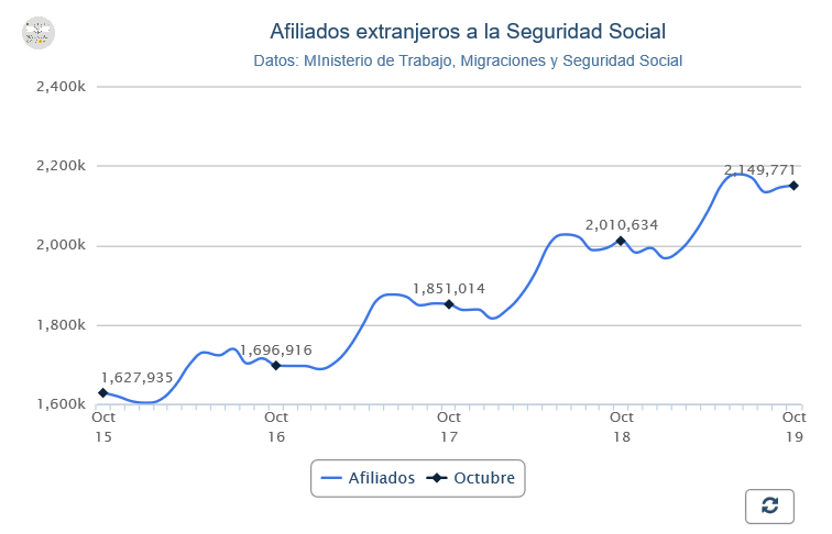 En octubre, también se ha registrado una subida de 4.509 afiliados extranjeros más que en septiembre.