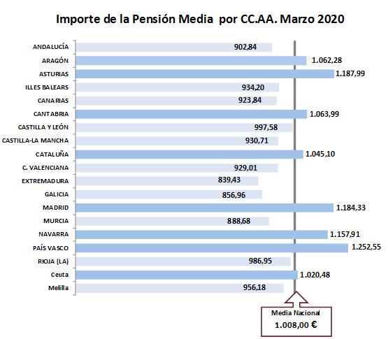 La pensión media del Sistema, que comprende las distintas clases (jubilación, incapacidad permanente, viudedad, orfandad y a favor de familiares), alcanzó los 1.008 euros mensuales, lo que supuso un aumento interanual del 2,16%. La pensión media de jubilación ascendió a 1.157,97 euros, un 2,12% más respecto al año pasado. Por su parte, la pensión media de viudedad, cuyas perceptoras fueron en un 92,05% mujeres, fue este mes de 723,22 euros al mes.