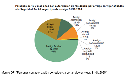 A 31 de diciembre de 2025, el número de personas extranjeras con una autorización de residencia por arraigo en vigor ascendía a 394.110, lo que supone un incremento del 26% respecto al año anterior.