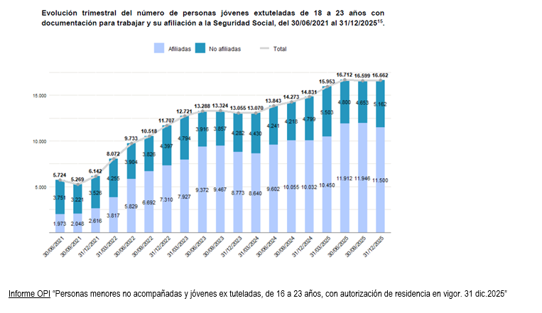 El OPI publica también la actualización de la estadística que analiza los datos de los niños, niñas y jóvenes no acompañados y jóvenes que han estado tutelados, de 16 a 23 años, con una autorización de residencia en vigor a 31 de diciembre de 2025.